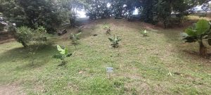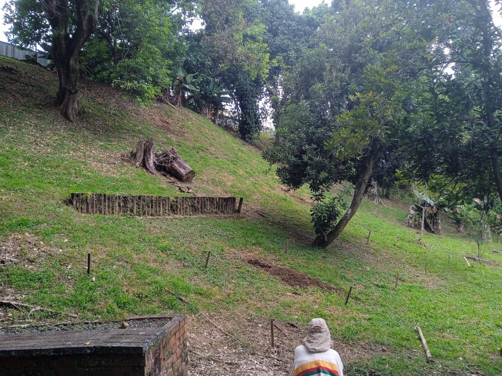 Banana suckers have been kindly donated by Alejandro´s parents, who run a banana plantation in the north of Valle del Cauca. These were planted following the task of producing a map setting out where cacao will be planted, and planting the bananas at 9 x 9 m, whereas the cacao will be planted as best as possible at 3 x 3 m. We have space for 115 cacao trees but on the advice of Dr Vaast have decided to reduce this amount to 64.