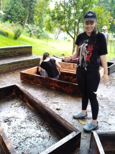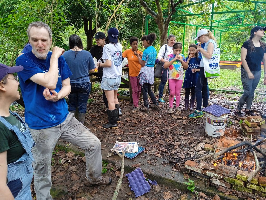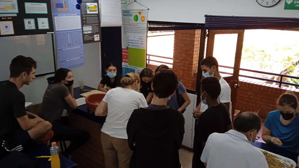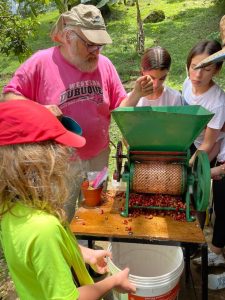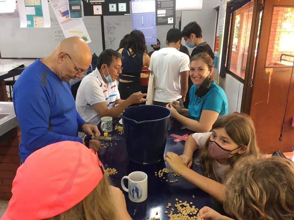 De pulping coffee with 10th graders and 4th graders during a BGS