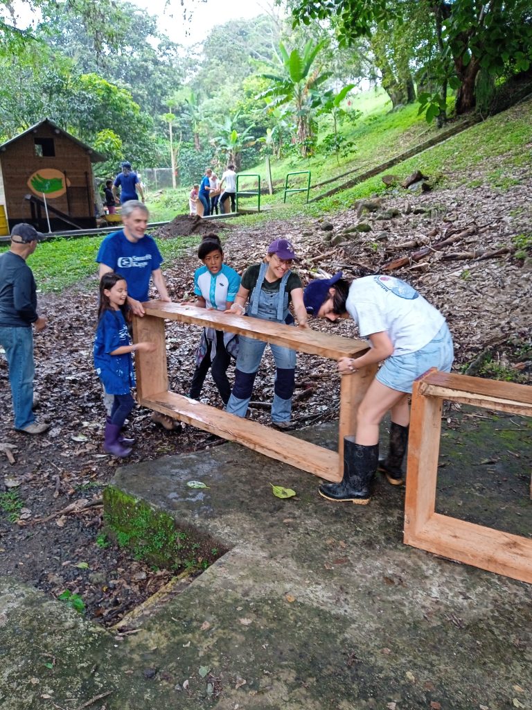 All hands on deck to move the heavy vegetable beds to be immunized before painting.