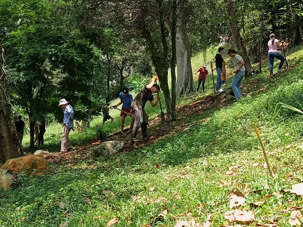 We have just spent a Saturday with volunteers of the garden and students from social service working on digging holes that were staked out by agricultural plant science students. This hard work is necessary to prepare the site for the cacao trees that we intend to plant!