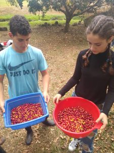 We were able to start the harvesting process 1 year and 10 months after the coffee was first germinated, following which it was planted. This demonstrates how long and complex this process really is (actually this is incredibly fast for producing coffee). Harvesting includes looking at all the beans and exclusively selecting the red or yellow beans that are ripe which means they are ready for being picked. We went around all the 113 trees and collected all the beans that showed a reddish color. The beans that didn’t present these colors were left for later collection, so they have more time to mature.