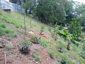 The stakes were then cut by volunteers during a Bolivar Weekend, and planted during the following week by our class. In order to plant them, we had to dig 30cm x 30cm x 30cm holes evenly spaced along the plantation, in which we then placed the stakes: holes were filled with a mixture of the soil that was removed plus a rich organic manure. They were well watered. Along the digging process, most of us encountered rocks, which slowed down the digging process significantly. We planted around 20 stakes, but we still have many that still need to be planted.