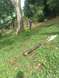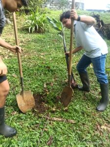 In agriculture class today my students and I planted six new banana plants in the cacao plot. Essentially, these will grow to provide more banana fruit but also to provide shade for the growing cacao trees, whilst also diversifying the garden.