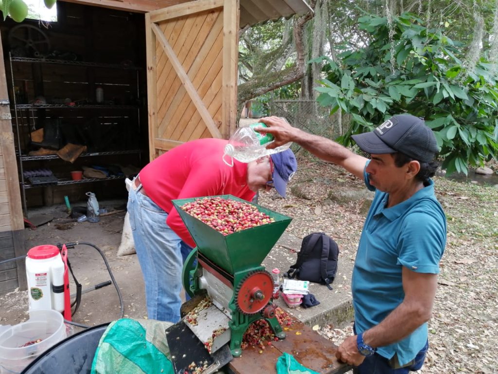 Professor Lionel Manrique of Colegio Philadelphia reached out to me after he had heard about the work that we are doing in the Bolivar Garden. He was invited to come to a Bolivar Garden Saturday and spent a fantastic sunny morning harvesting coffee and learning about the agroforestry system we have produced at school.