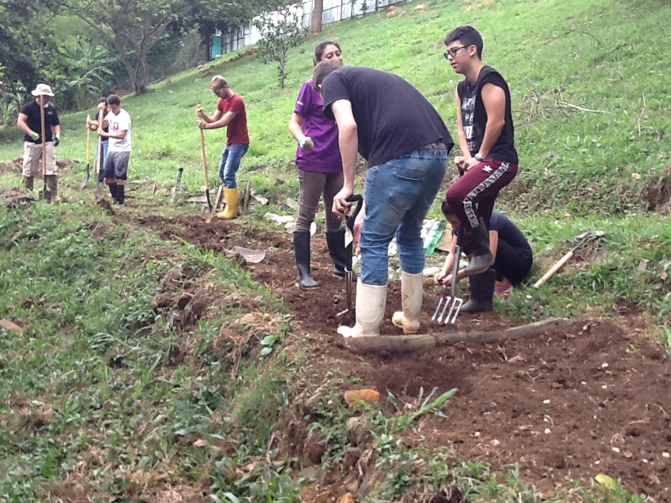 This has taken the majority of the students’ time. Additionally, learning from the iguana experience, we erected wooden posts cast in concrete that were not being used in the school. We are reusing these posts in order to erect a wire mesh fence to prevent iguanas and other pests from invading our terrace beds.