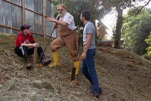Dr Waliszewski discussing ideas on the placement of the compost areas with Juan Mario and Christian