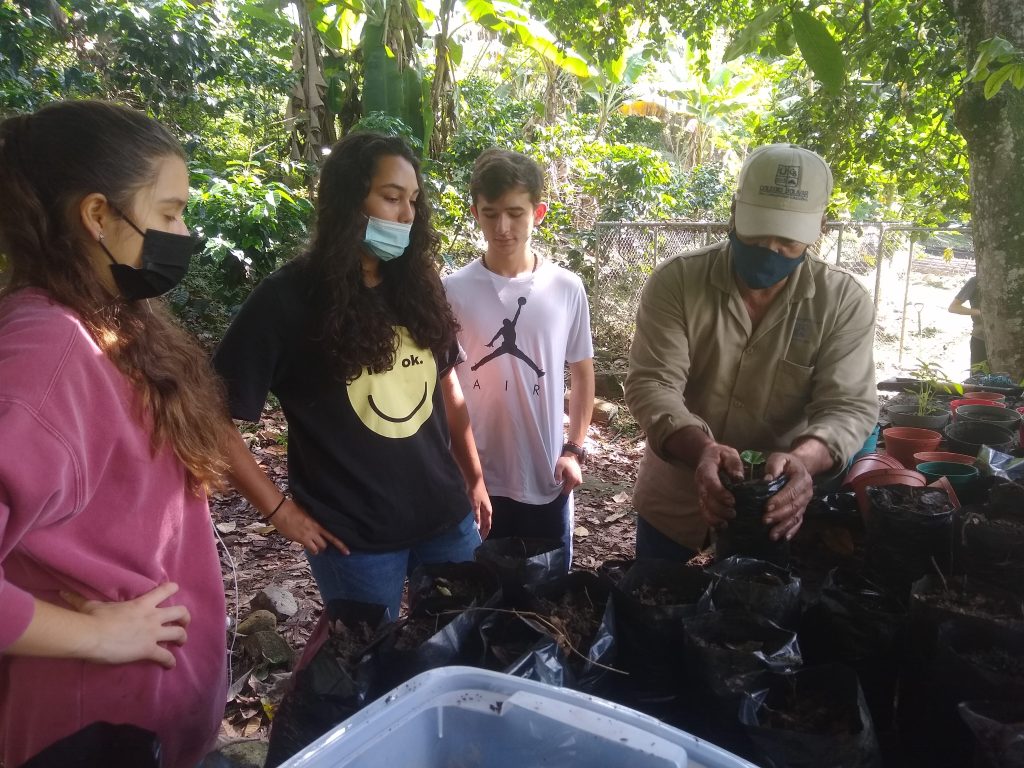After setting up the seed bed for our new coffee, Don Hugo Guerrero, our school gardiner, showed students how to transplant seedlings into new bags with compost for their future growth.
