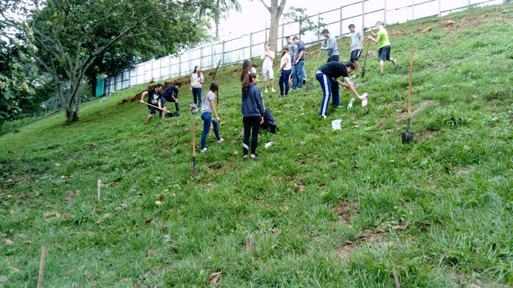 We prepared the land with agriculture students plus some students from 10th and 8th grade. Holes were dug, soil mounds made and pumpkin seeds planted and watered.