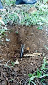 Students measuring soil temperature at 15cm, and taking soil samples (90g) in order to use with Solvita test equipment to determine the soil respiration of the soil. Using the chart above students determined that the soil had a high level of soil respiration indicating a fertile soil.