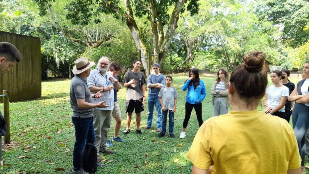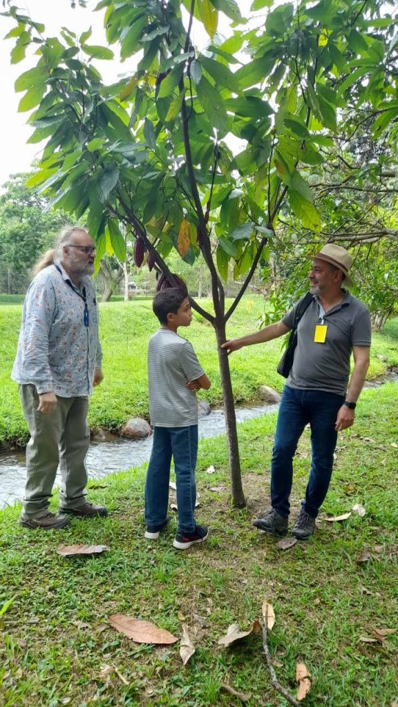 Students were actively engaged in the discussions. Later, we took the scientists to look at our existing cacao trees planted in 2020 during the 5k Verde Race.