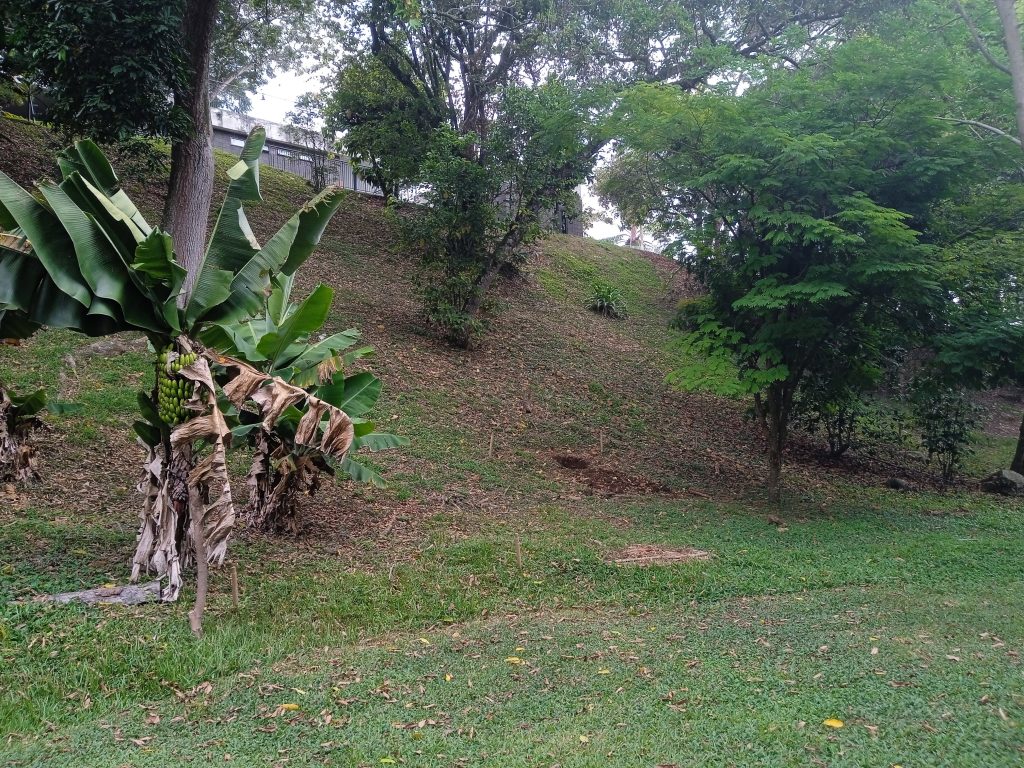 Proposed location of the cacao plot – before the Bolivar garden - The first step is to peg out the area in a 3mx3m triangular system to see the carrying capacity of the area – students, BGS and Dr W