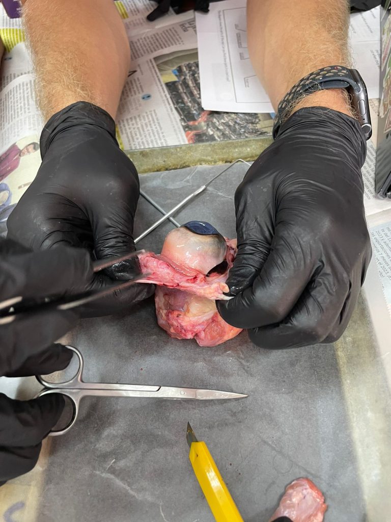 El objetivo de esta actividad práctica fue descubrir cómo la anatomía ocular transforma las ondas de luz en señales sensoriales eléctricas, las cuales luego viajan al cerebro a través de una compleja red de “cableado” nervioso. Al observar el lente, la córnea, el iris y el nervio óptico en su contexto real, los estudiantes obtuvieron una comprensión profunda de los procesos internos que permiten la visión humana y animal.