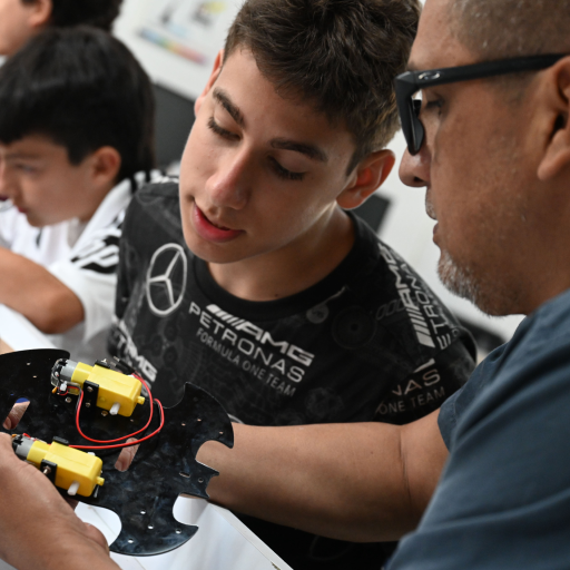 Our curriculum includes core subjects in English and Spanish, along with a wide range of electives such as art, robotics, video production, Model United Nations, artificial intelligence, and video game design. With a dynamic schedule and rotating classes, students enjoy interactive learning, extracurricular activities, and a vibrant community that fosters excellence, creativity, and collaboration.